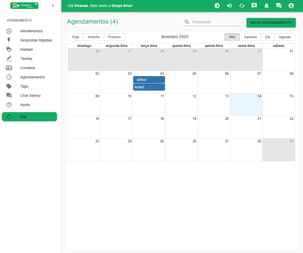 Marque reuniões, consultas ou compromissos diretamente pelo chatbot. Tudo integrado e sem complicações!