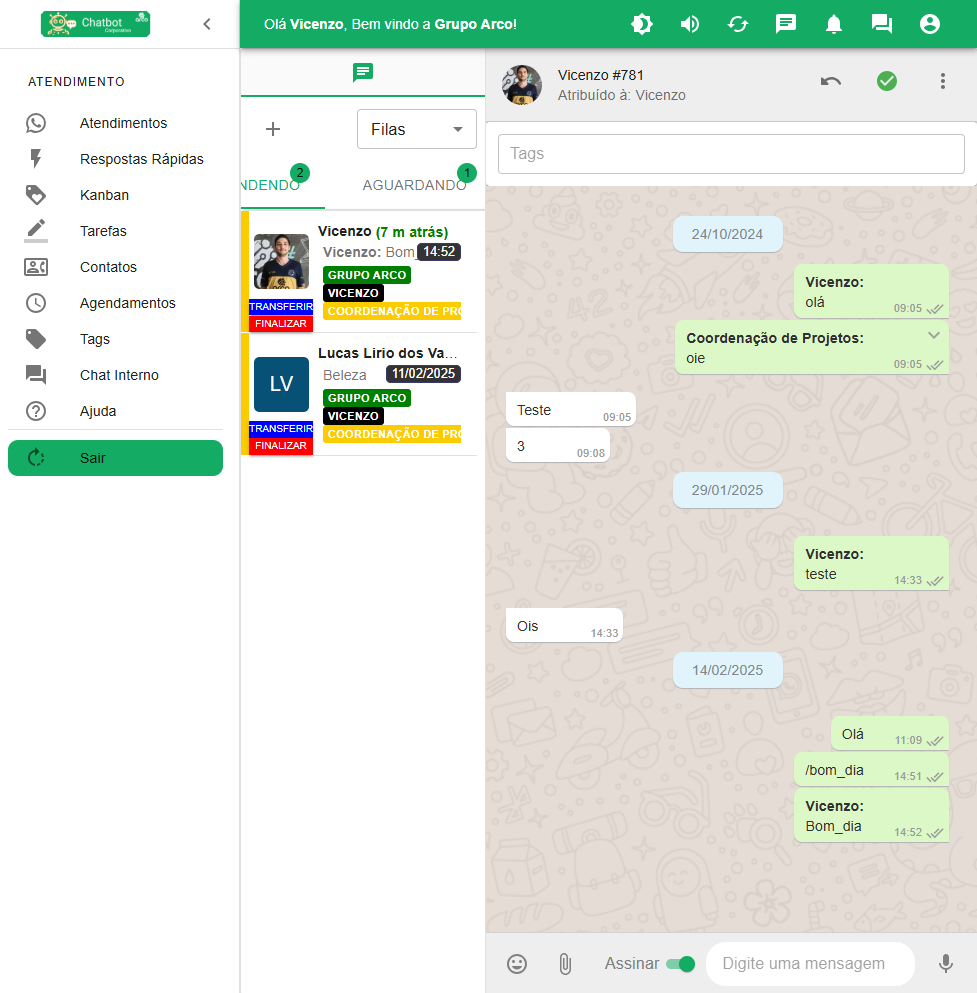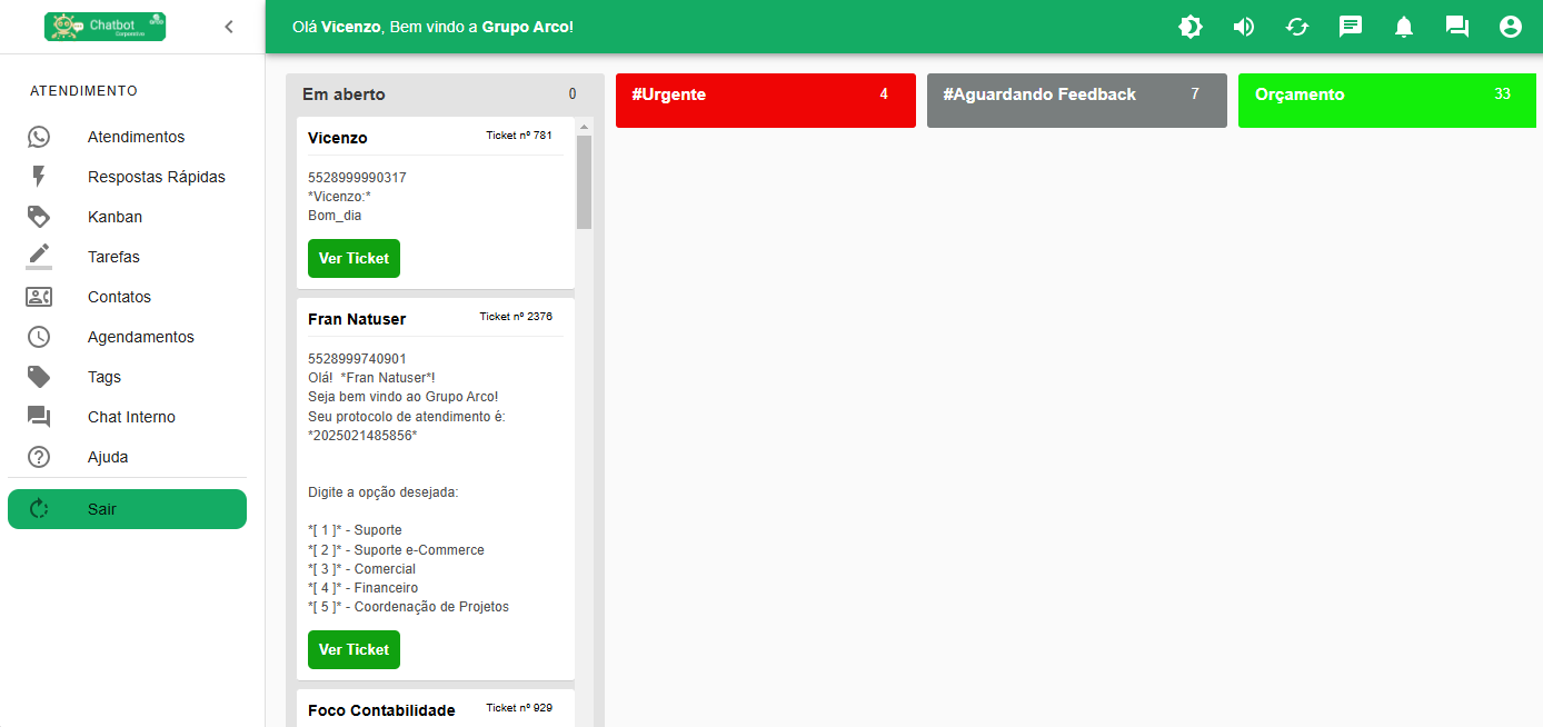 Organize seus atendimentos em um fluxo visual prático e intuitivo. Gerencie cada interação do início ao fim com facilidade!